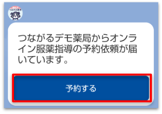 - 薬局から予約依頼が届いたら、【予約する】をタップします。