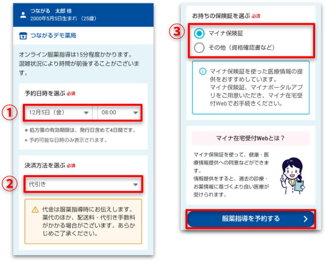 医療機関でオンライン服薬指導希望の旨と利用する薬局を伝えた場合、薬局からオンライン服薬指導の予約依頼が届きます。