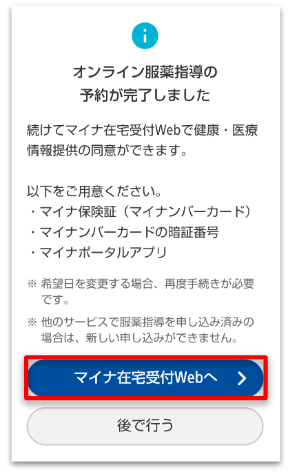 - 予約完了画面の【マイナ在宅受付Webへ】をタップします。