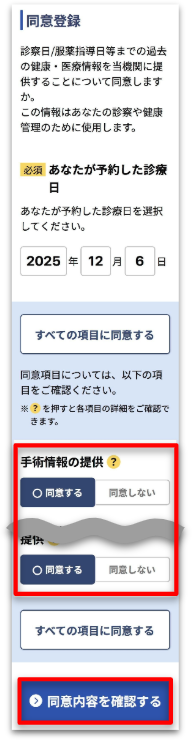 マイナ在宅受付Webから健康・医療情報提供の同意を行う