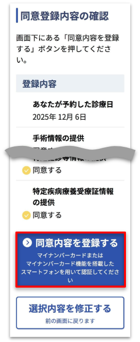 - 内容を確認し、【同意内容を登録する】をタップします。